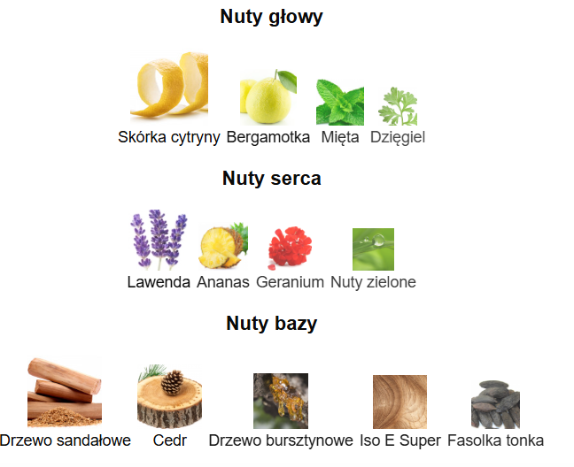 - Drewno sandałowe – nadające głębię i ciepłą, wyrafinowaną bazę.
